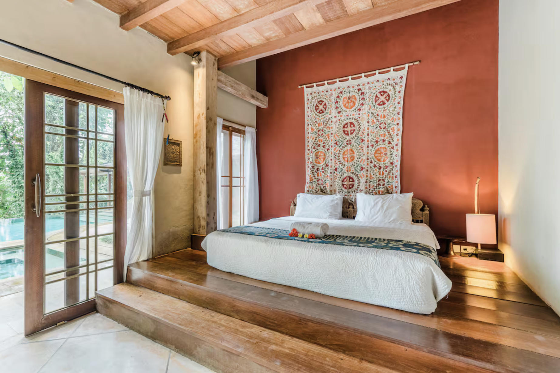 Includes a beautiful Master bedroom with king-sized bed on a tatami platform, 2 bathrooms (with sunken tub and separate shower). Price includes your tuition. This second villa is just a few minutes walk from the retreat villa where we will have our meetings.